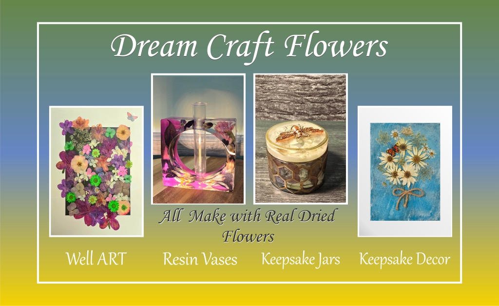 Hi, I’m Olena Reis – the maker and founder of Dream Craft Flowers, a creative studio where I bring nature’s beauty to life in lasting art pieces. Based in Liberty, South Carolina, I specialize in handcrafted resin and dried flower creations, from pressed flower wall art and preserved floral vases to keepsake jars, wine stoppers, and custom memory pieces.